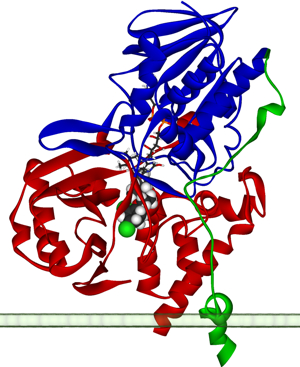 2. Monoamine oxidase (MAO) is an enzyme serving as the catalyst needed for the neurotransmitter breakdown process. (A molecule is pictured above in the squiggly ribbon diagram.)
